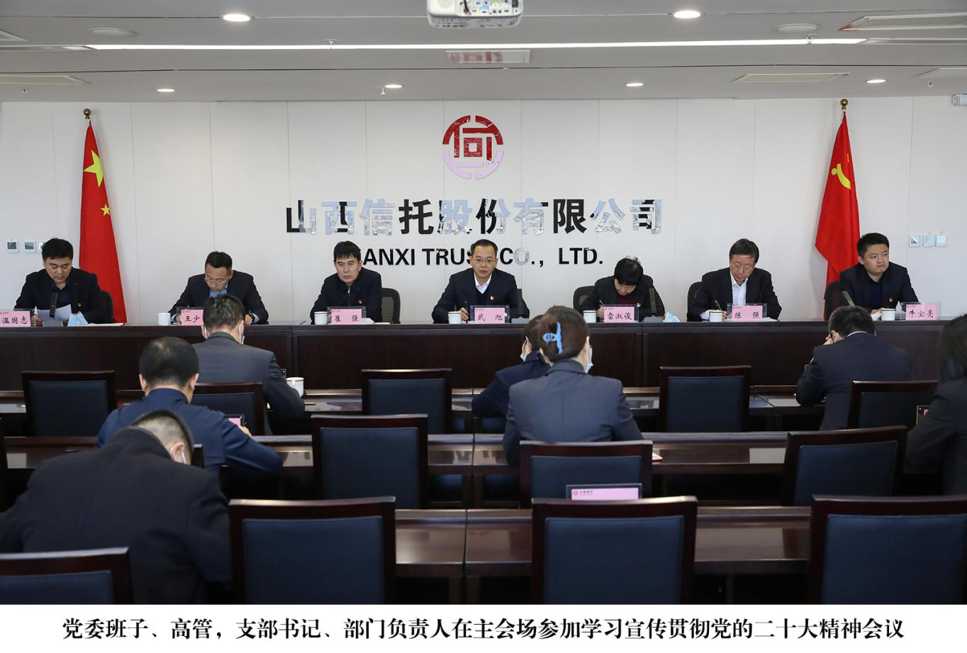 12月6日下午,中共山西信托股份有限公司委員會召開學(xué)習(xí)宣傳貫徹黨的二十大精神會議,傳達(dá)學(xué)習(xí)習(xí)近平總書記在中國共產(chǎn)黨第二十次全國代表大會上的報告精神,省委十二屆五次全會精神、省委林武書記在省管主要領(lǐng)導(dǎo)干部學(xué)習(xí)貫徹黨的二十大精神專題研討班開班式上的講話精神,集團(tuán)公司黨委《關(guān)于深入學(xué)習(xí)宣傳貫徹黨的二十大精神的實施方案》,安排部署公司學(xué)習(xí)宣傳貫徹工作。黨委副書記、總經(jīng)理雷淑俊主持會議,黨委書記、董事長武旭做動員講話,全體黨員干部在主會場與分會場參加會議。
